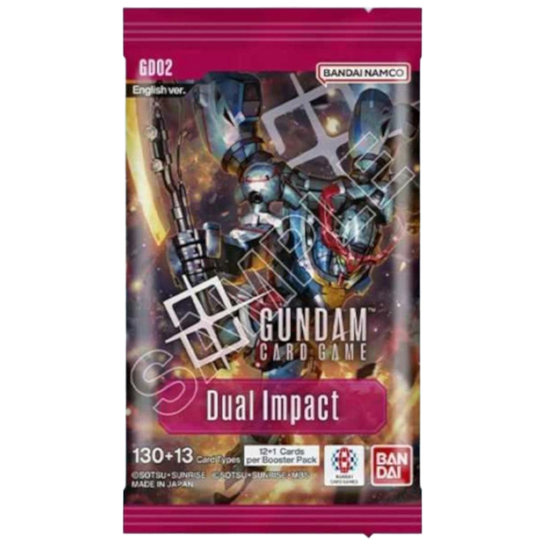 Brace for "Dual Impact" and take the battle to a new stage with this second booster pack for the GUNDAM CARD GAME. This set introduces new units and pilots to expand your deck-building options.